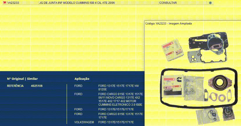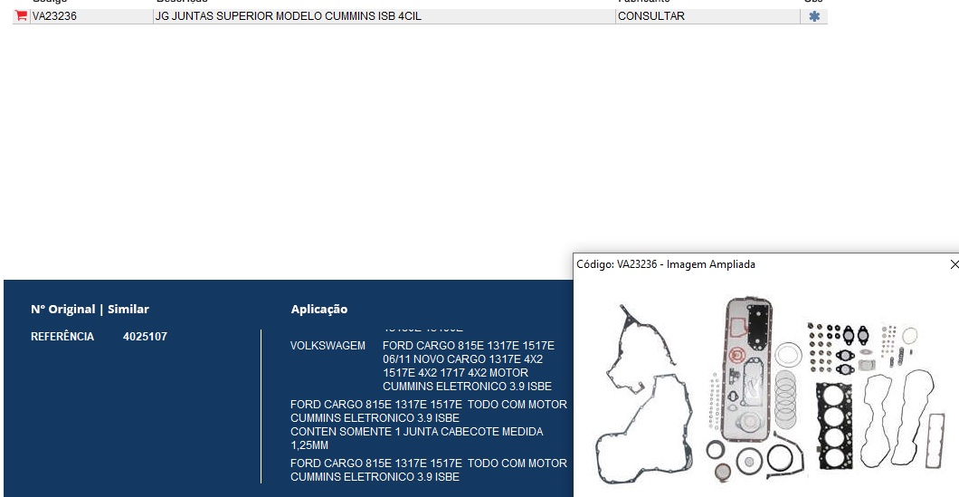 5054 - JG JUNTA MOTOR CUMMINS ISB 4-CIL CARGO/VW INFERIOR ELETRONICO