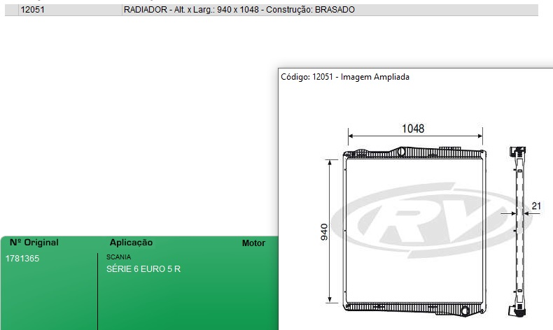 5085 - RADIADOR AGUA SCANIA R400/R440/R480/R560/R620 SERIE 6
