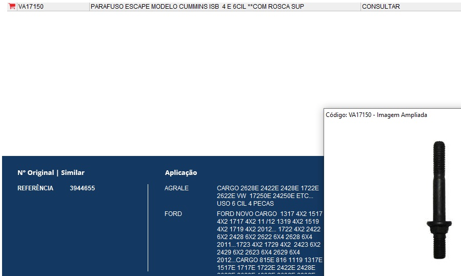 5125 - PARAFUSO CABECOTE FORD CARGO/VW CUMMINS ISB CURTO