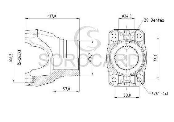 5422 - FLANGE DIFERENCIAL FORD F12000/ VW 12.140H/14.140/14.210 39-ESTRIAS ACO