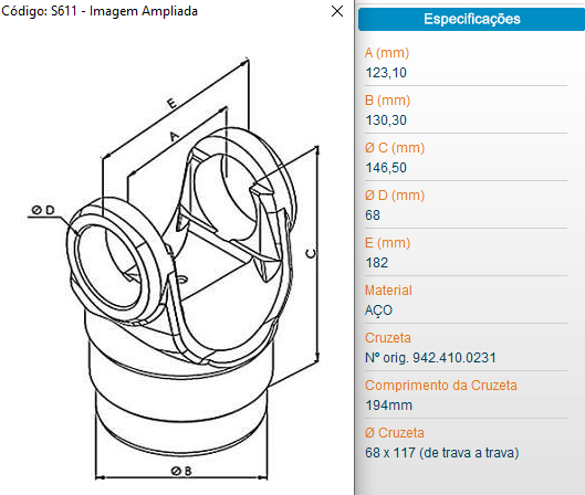 5943 - CRUZETA DIF. VOLVO N10/N12/NL10/NL12 EV90/EV91