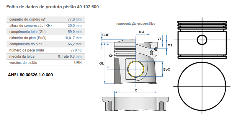 6077 - PISTAO C/ANEL COMPRESSOR MB 77MM 0.00=STD