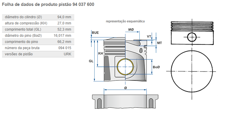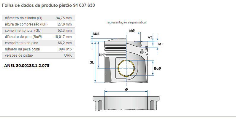6586 - PISTAO C/ANEL COMPRESSOR MB 352/352A/366 94MM 0.00 STD