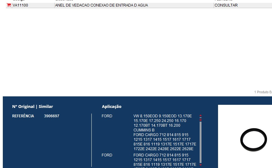 6606 - ANEL VEDACAO CAVALETE AGUA FORD CARGO/VW CUMMINS B