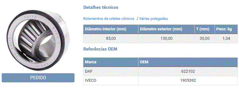 7020 - ROLAMENTO PINHAO TRAS FORD/CARGO/VW R220 R240 RD23-145 RR23-145