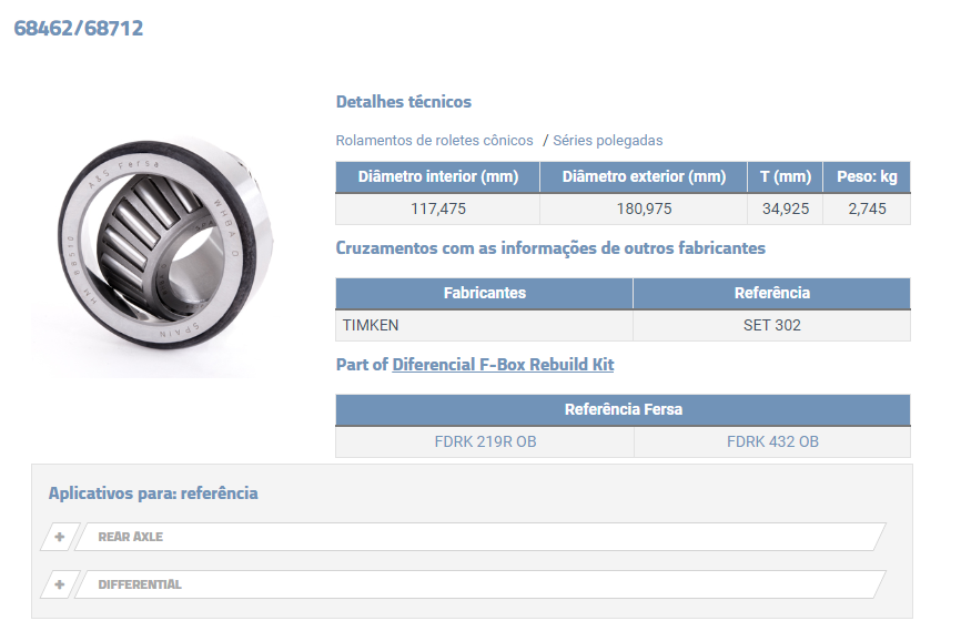 7013 - ROLAMENTO LATERAL COROA FORD/CARGO/VW/ LD R230 R240 RD23-145 RR23-145 LD/LE