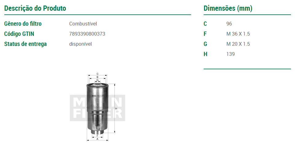 7380 - FILTRO DIESEL MITSUBISHI L200 93/...