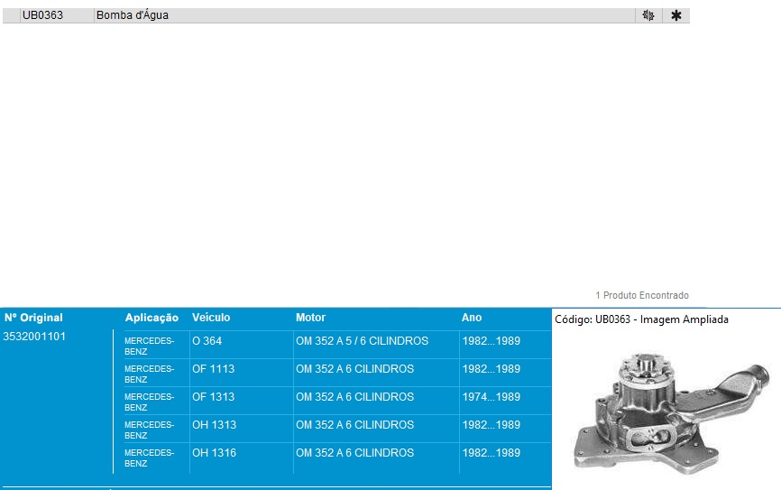 7410 - BOMBA D/AGUA MB OM-352 ONIBUS REBAIXADO C/ TAMPA