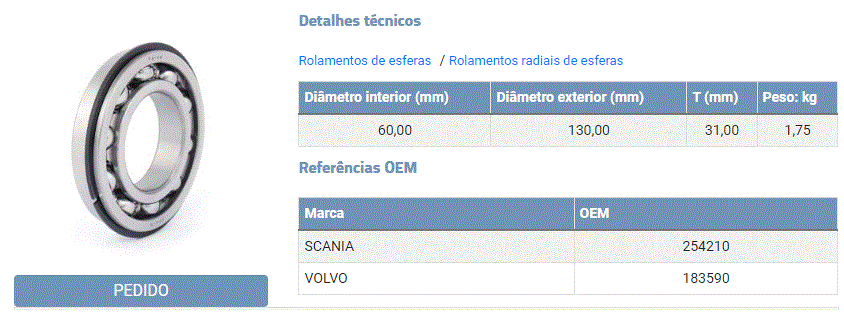 8649 - ROLAMENTO RODA TRAS INT FORD CARGO/FORD/VW/VOLVO