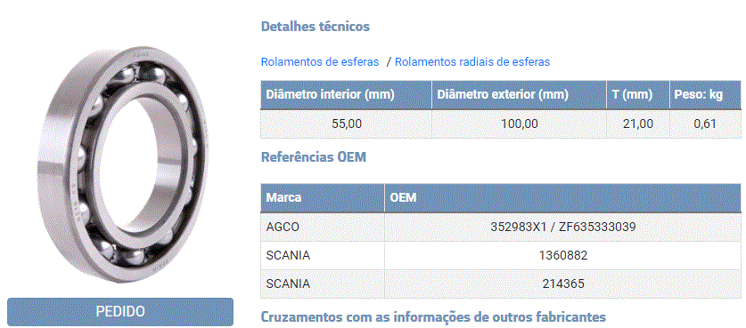 8697 - ROLAMENTO EIXO COMPENSADOR MASSA GM/PERKINS LISO 4236/4248 AGRICOLA