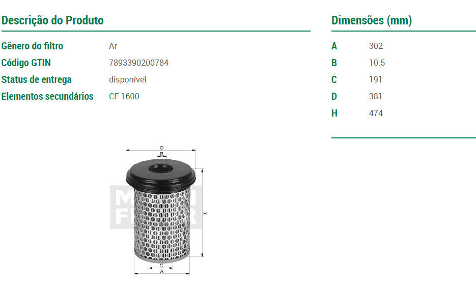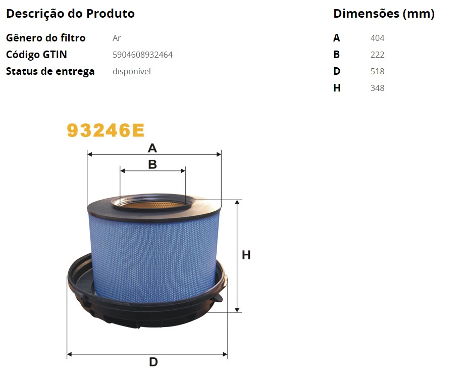 8825 - FILTRO AR FORD CARGO C/MOTOR FORD