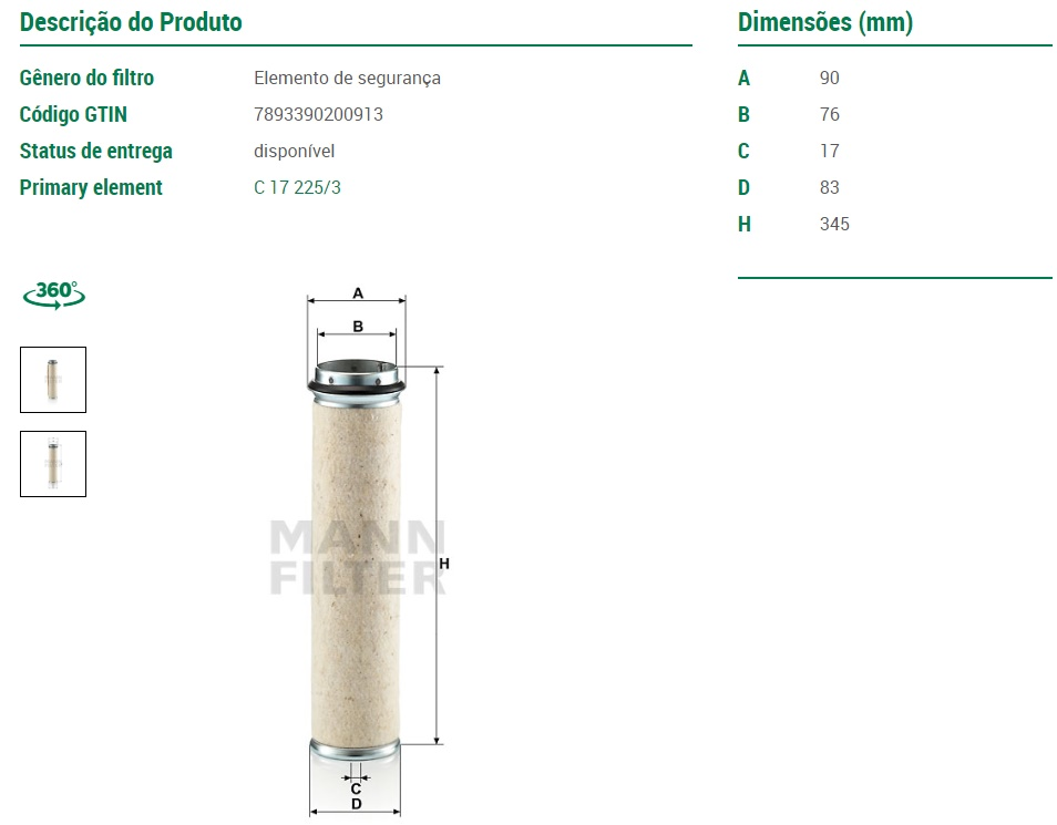 8834 - FILTRO AR SEGURANCA MB 352/366