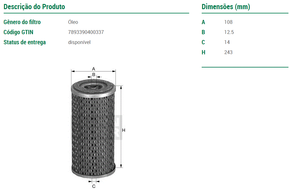 10133 - FILTRO LUBRIF MB 1519/2219/1924/1925/1932/1933