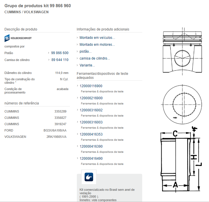 10528 - KITS MOTOR FORD CARGO/VW CUMMINS SERIE C 6CTAA 8.3L 92/00