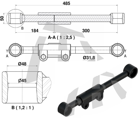 10532 - TIRANTE TENSOR CARRETA REGUL RANDON SUPER LEVE 480MM