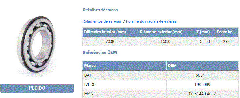 10886 - ROLAMENTO LATERAL COROA MB 1935/2635/1941/1938/2638 LE/LD