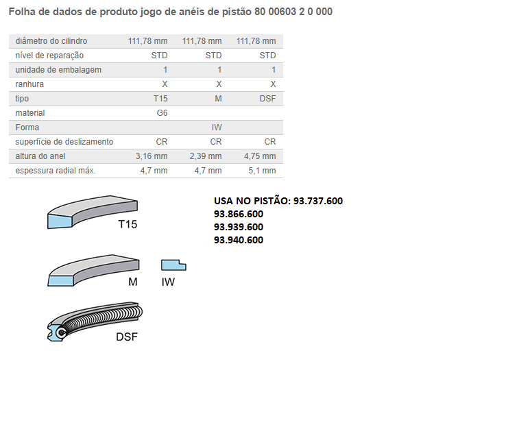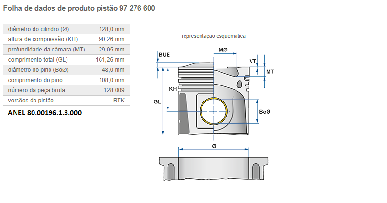 11893 - PISTAO C/ANEL MOTOR MB 355/6 1934 TURBO/INTERCOOLER
