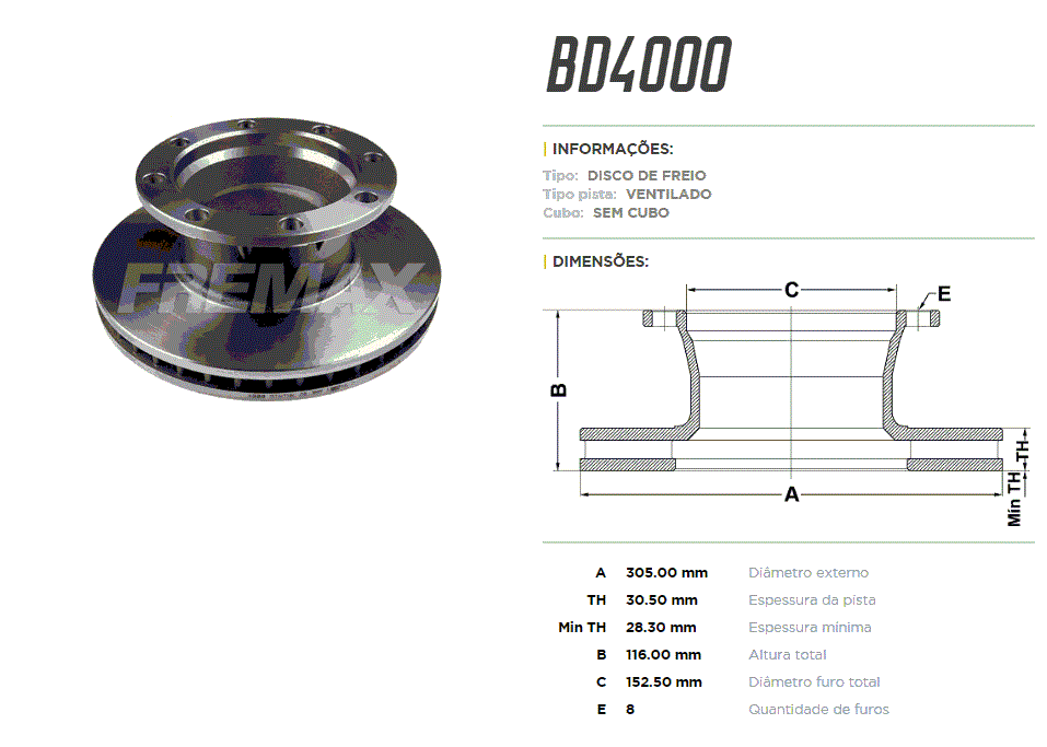 11908 - DISCO FREIO DIANT FORD F4000 81/97 VENTILADO 8-FUROS