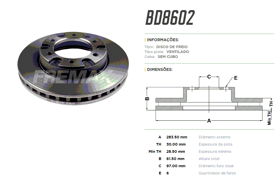 11909 - DISCO FREIO DIANT/TRAS FORD F4000 81/97 VENTILADO 6-FUROS
