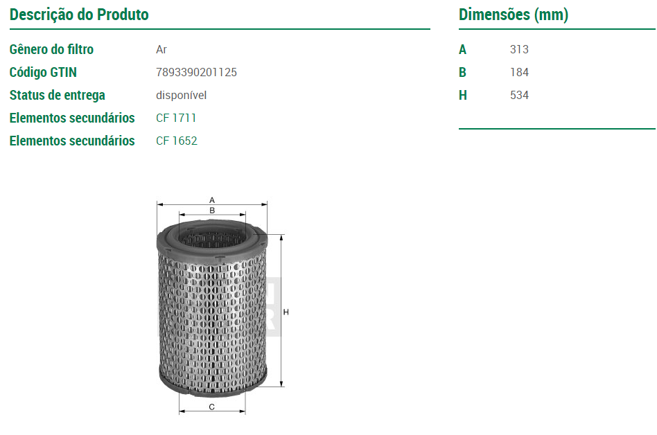 12278 - FILTRO AR SCANIA 114/124 SERIE-4 98/... FUNDO ROSA ALTURA 534MM