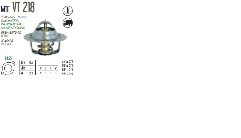 12292 - VALVULA TERMOSTATICA GM/PERKINS 3.152/4.236 D10 D20 82 GRAUS
