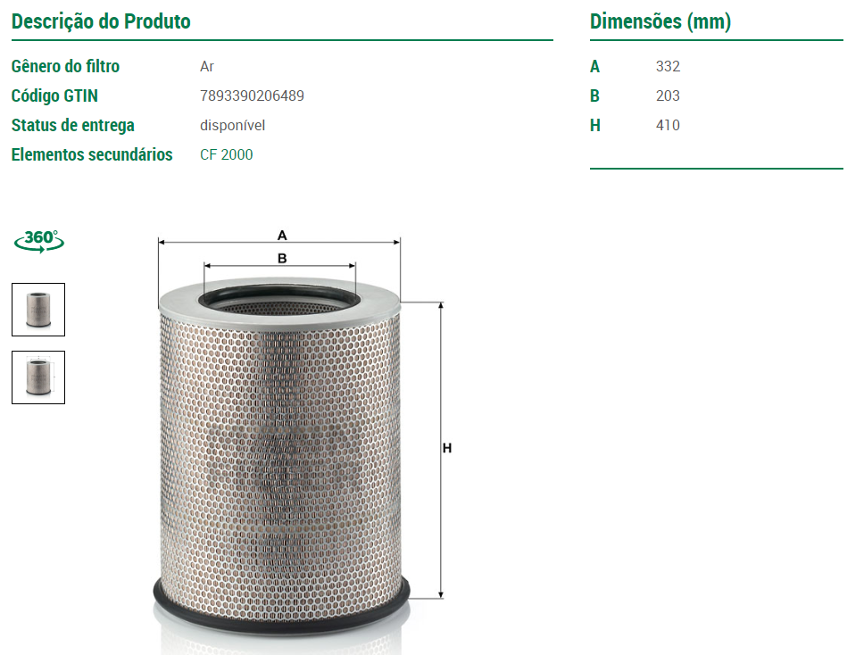12967 - FILTRO AR VOLVO FH12/NH12 D13/D12A/B/C/D .../09 S/CHAPEU