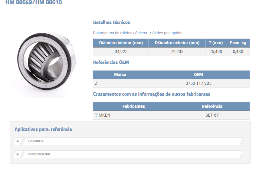14056 - ROLAMENTO LATERAL COROA FORD/VW LD/LE F4000/7.100/8.120/8.140/8.150 DIF