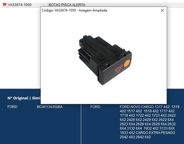 14259 - INTERRUPTOR TECLA PISCA ALERTA NOVO FORD CARGO