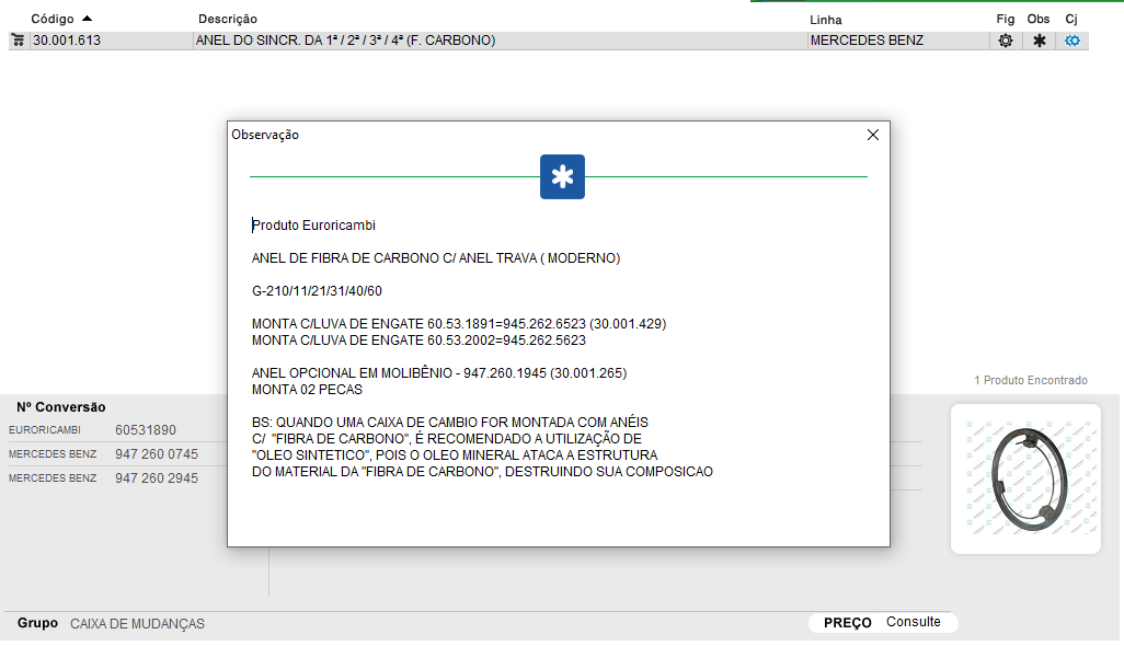 1495 - ANEL SINCRONIZADO CAMBIO MB 1/2/3/4 G 210/211/230/240/330 MODERNO CARBONO