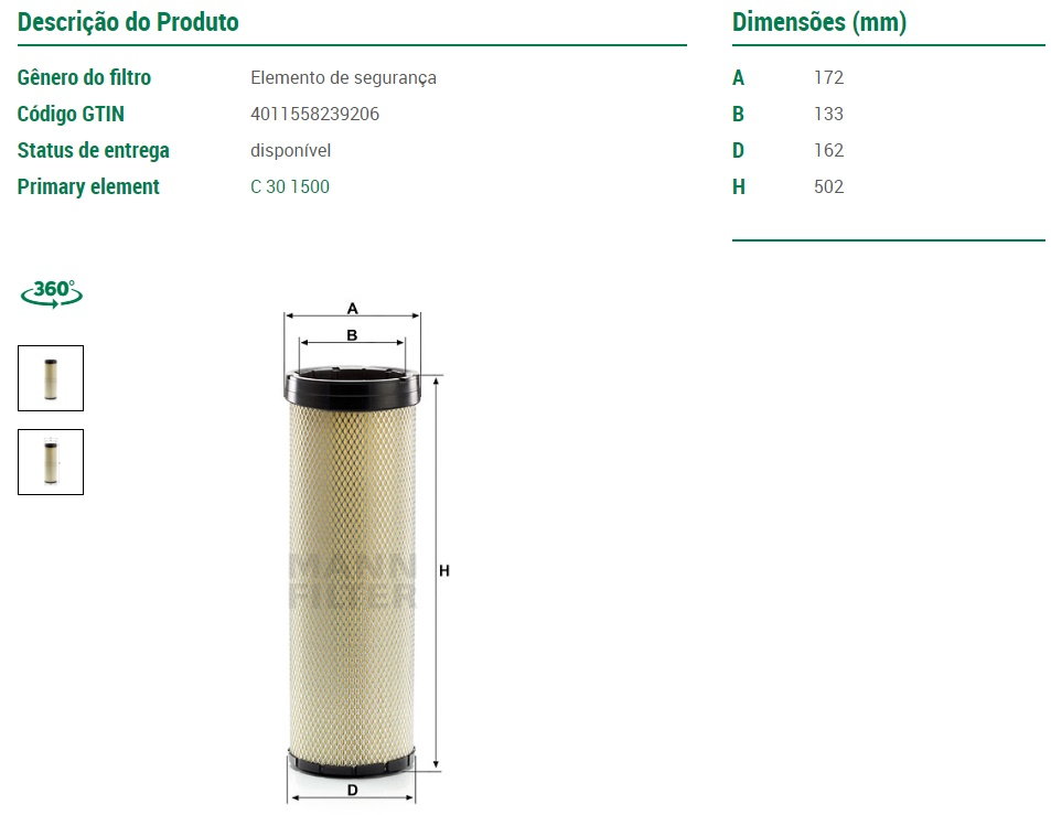 1498 - FILTRO AR SEGURANCA SCANIA SERIE 5