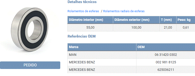 1561 - ROLAMENTO CAIXA TRANSF.MOD.MB EIXO PRIMARIO INF TRAS S/ RASGO TRAVA