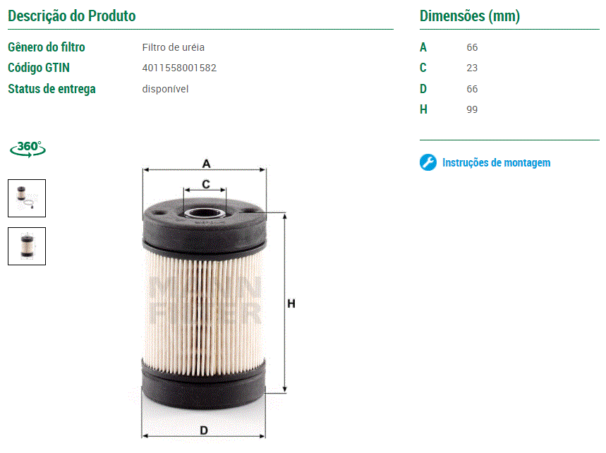 1572 - FILTRO ARLA IVECO/VOLVO STRALIS/TRAKKER/FH/FM/FMX TODOS .../12