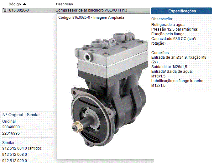 1578 - COMPRESSOR AR VOLVO FH/FM/NH D13 MODELO WABCO 2-CIL 636CC