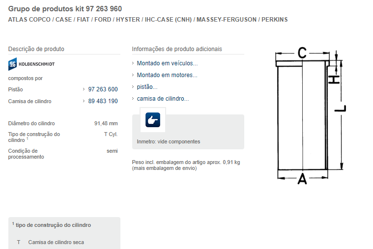 16343 - KITS MOTOR GM/PERKINS 3.152/4.203 MF 50X/55X/65X/155/235/250