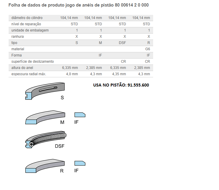 16554 - PISTAO C/ANEL COMPRESSOR MB 355/5/6 STD