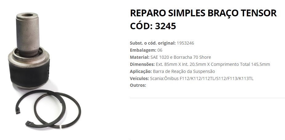 16798 - BUCHA PINO TIRANTE SIMPLE 85MM SCANIA ONIBUS K/F 112/113