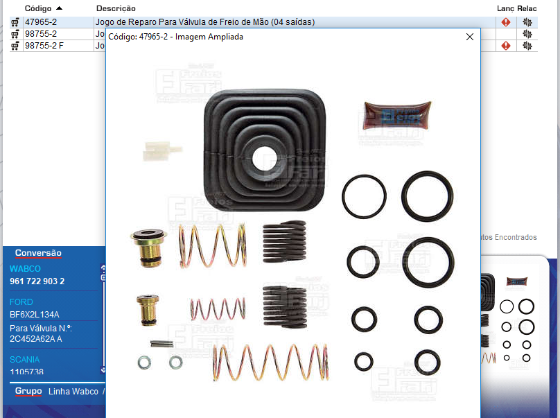 17691 - REPARO VALV FREIO MAO WABCO 04-SAIDA SCANIA/CARGO/VW