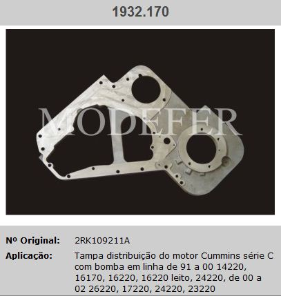 18291 - TAMPA DISTRIBUICAO DIANT INT FORD CARGO/VW CUMMINS C 6CTAA 8.3L ENCAIXE BOMBA 85MM