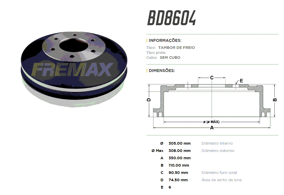 18739 - TAMBOR TRAS GM A20/D20 93/96 6-FUROS