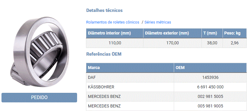 19116 - ROLAMENTO LATERAL COROA ESQ.GRAN. SCANIA R752/R770