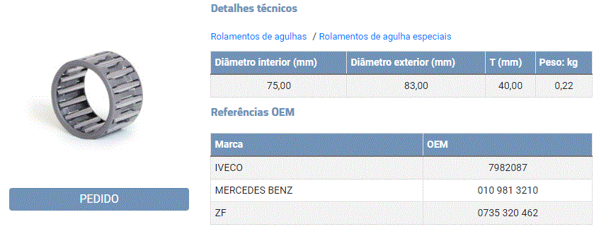 19134 - ROLAMENTO GAIOLA CAMBIO MB/VOLVO 1 8S-135/16S-130