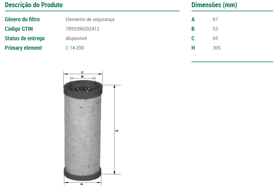 19329 - FILTRO AR VOLVO FH12/NH12 D13/D12A/B/C/D .../09 S/CHAPEU