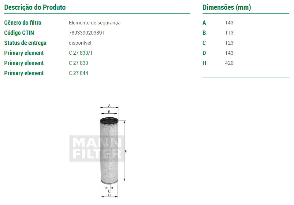 19517 - FILTRO AR SEGURANCA MB/VW 13.180/15.180/16.200/17.210/24.220/26.300
