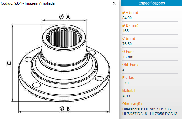 20902 - FLANGE CARDAN FORD CARGO/VW 18.310/19.310/31.300 16-ESTRIAS YOKI ACO