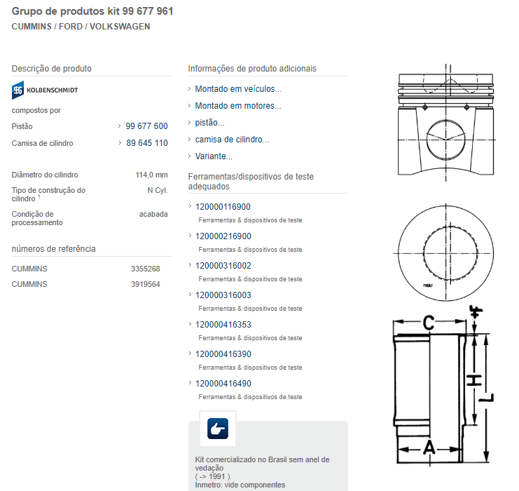 21631 - KITS MOTOR FORD CARGO/VW CUMMINS SERIE C 6CT 8.3L .../91