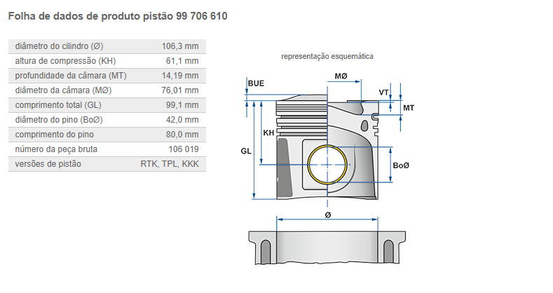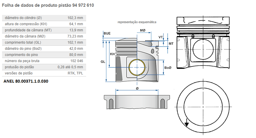 2268 - PISTAO C/ANEL MOTOR MB OM-924/926 LA ELETRONICO EURO 5 PINO PISTAO 44MM C/ CANAL REFRIG
