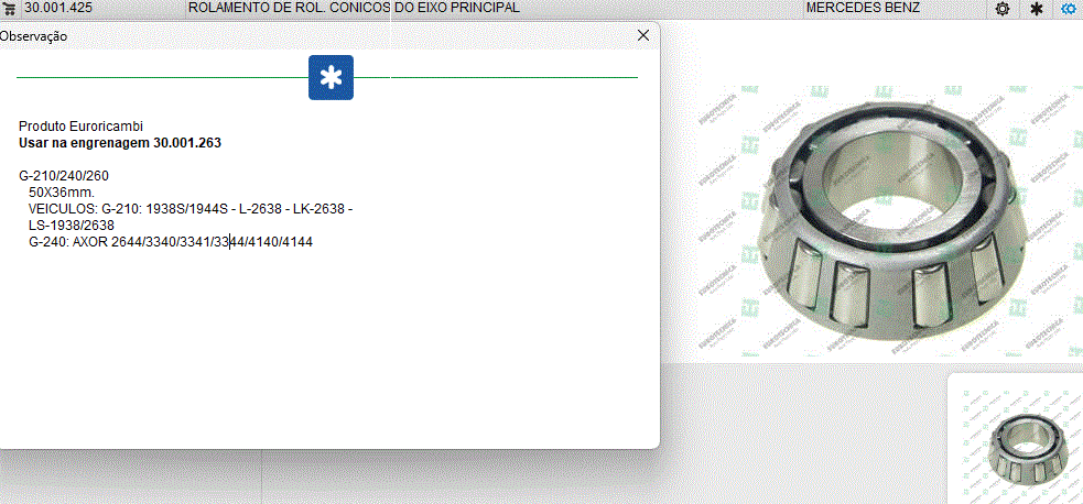 2277 - ROLAMENTO CAMBIO MB CONTRA EIXO TRAS GO 160/G160GO170/G170/GO190/G190