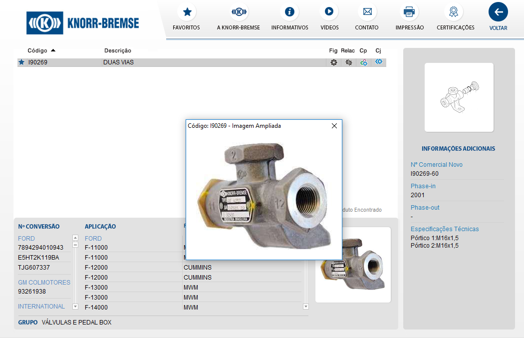 23011 - VALVULA DUAS VIAS TRANSFERENCIA M16 FORD CARGO/VW/GMC