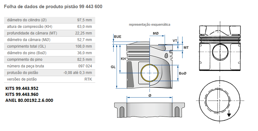 2286 - PISTAO C/ANEL MOTOR MB 366/364 A-LA TURBO INTERC 52MM 0.00 STD