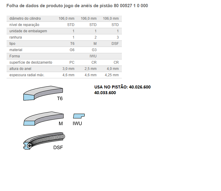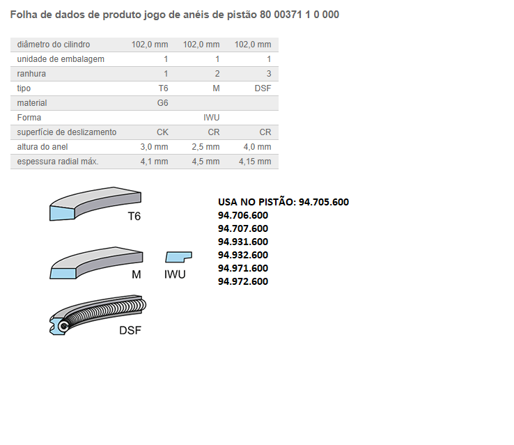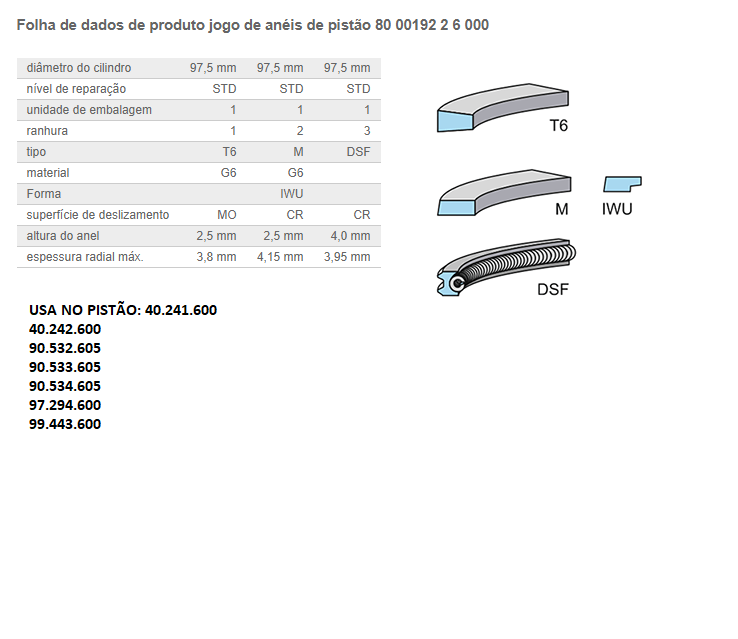 2291 - ANEL MOTOR MB 364/366/A/LA STD P/ 1 CILINDRO 1618/1620/1720